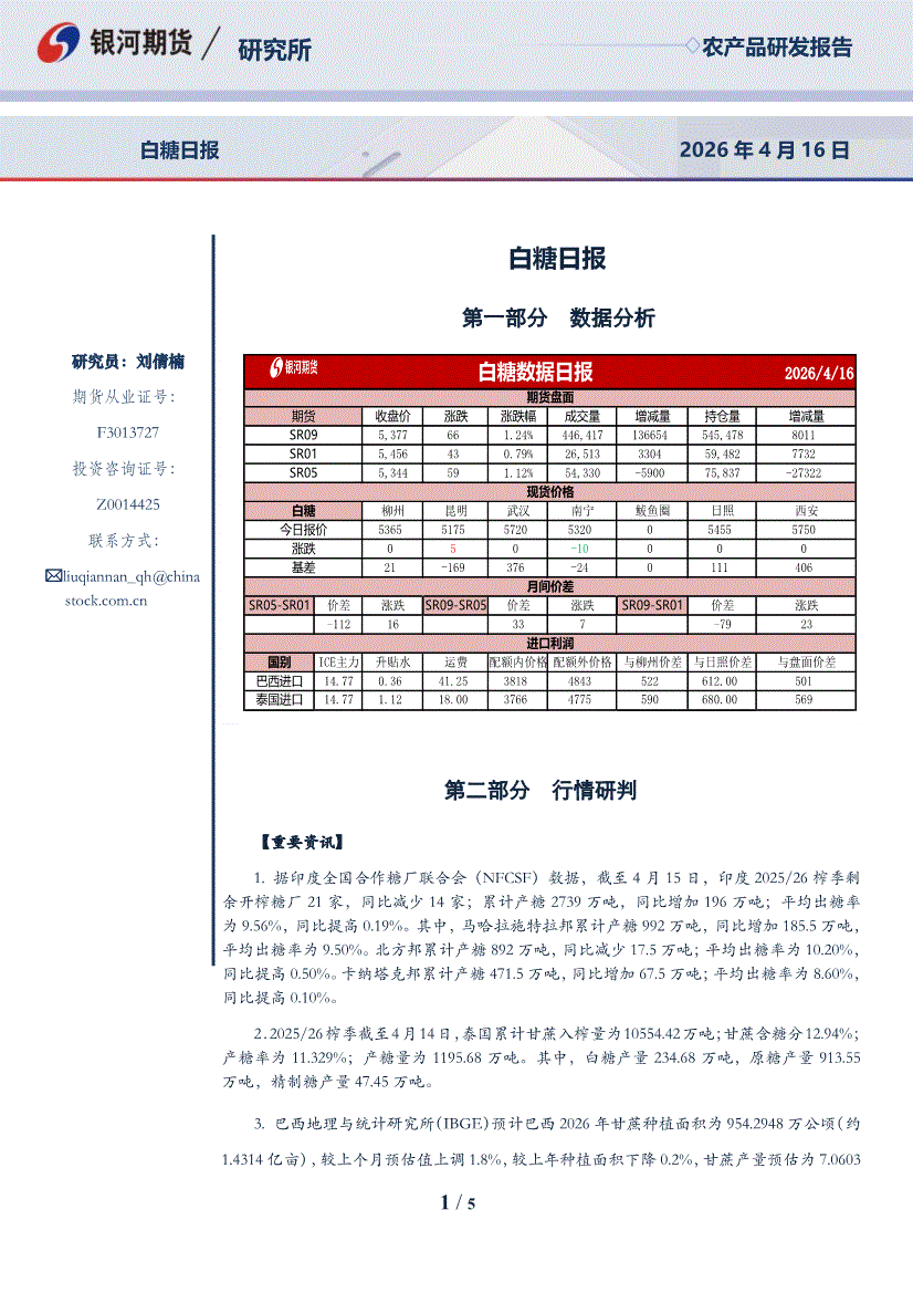 银河期货-白糖日报-260416