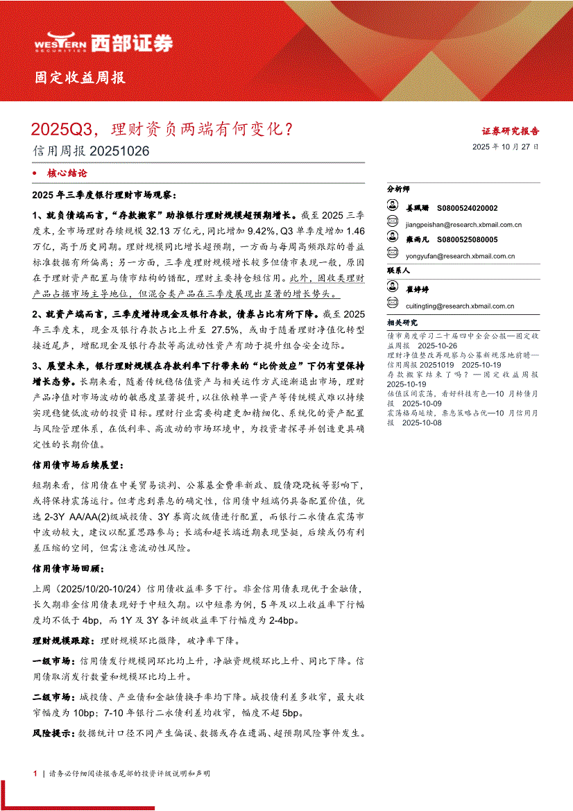 西部证券-信用周报:2025Q3,理财资负两端有何变化?-251027