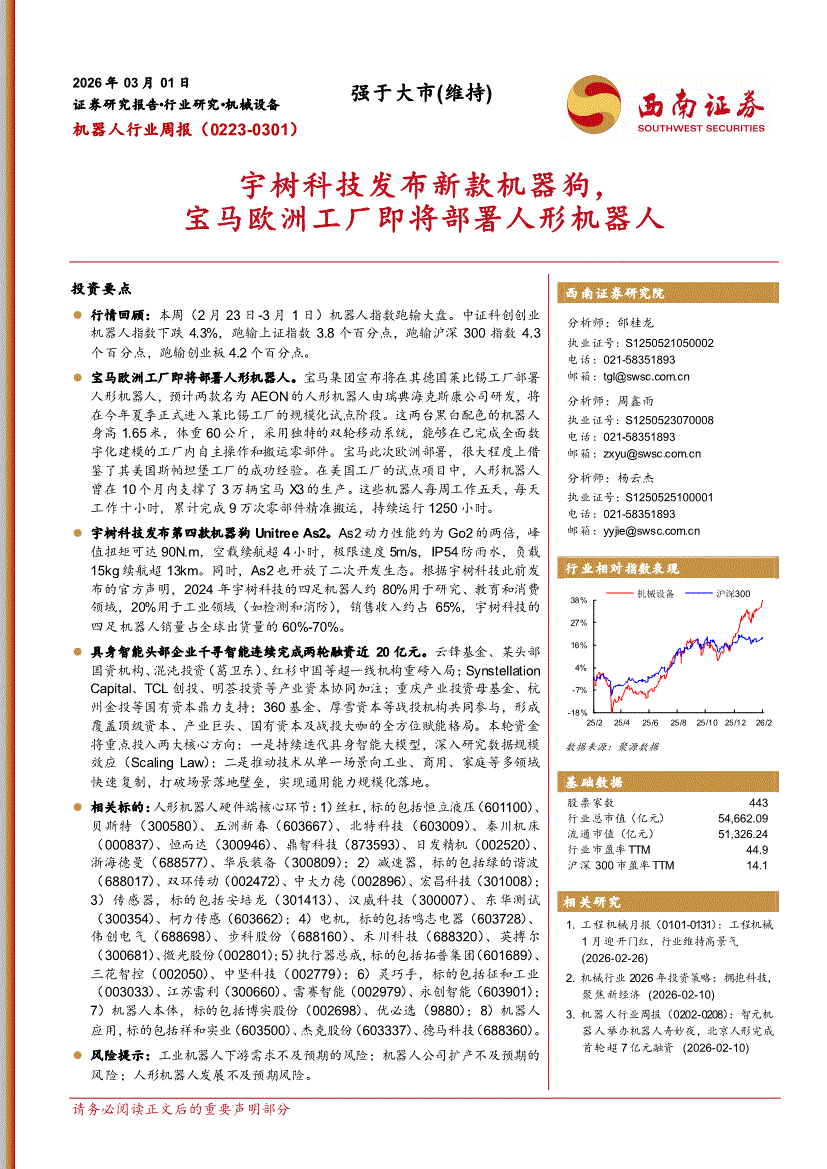 机器人行业:西南证券-机器人行业周报:宇树科技发布新款机器狗,宝马欧洲工厂即将部署人形机器人-260301