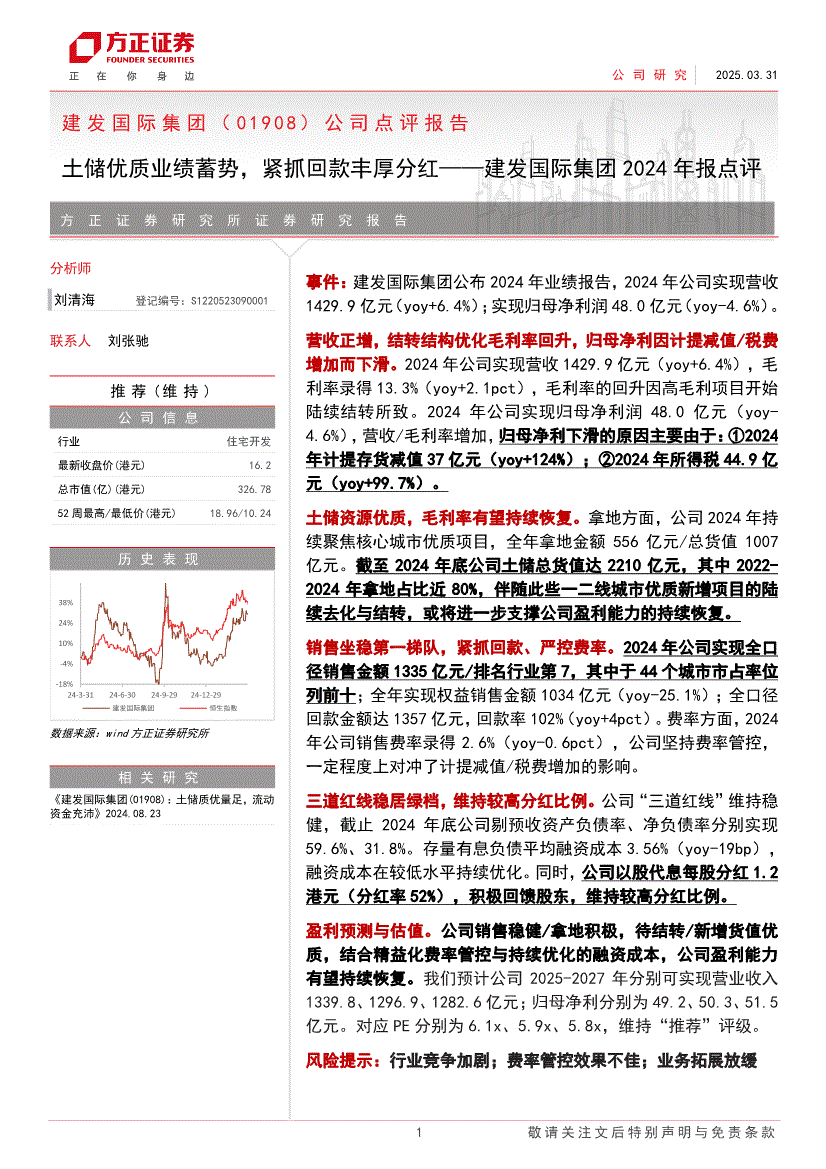 建发国际集团:方正证券-建发国际集团-1908.HK-2024年报点评:土储优质业绩蓄势,紧抓回款丰厚分红-250331