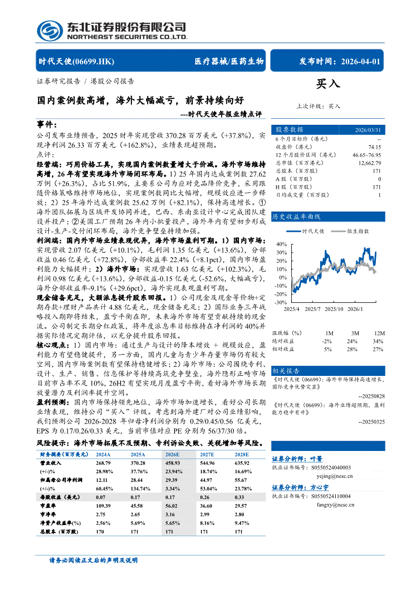 时代天使:东北证券-时代天使-6699.HK-年报业绩点评:国内案例数高增,海外大幅减亏,前景持续向好-260401