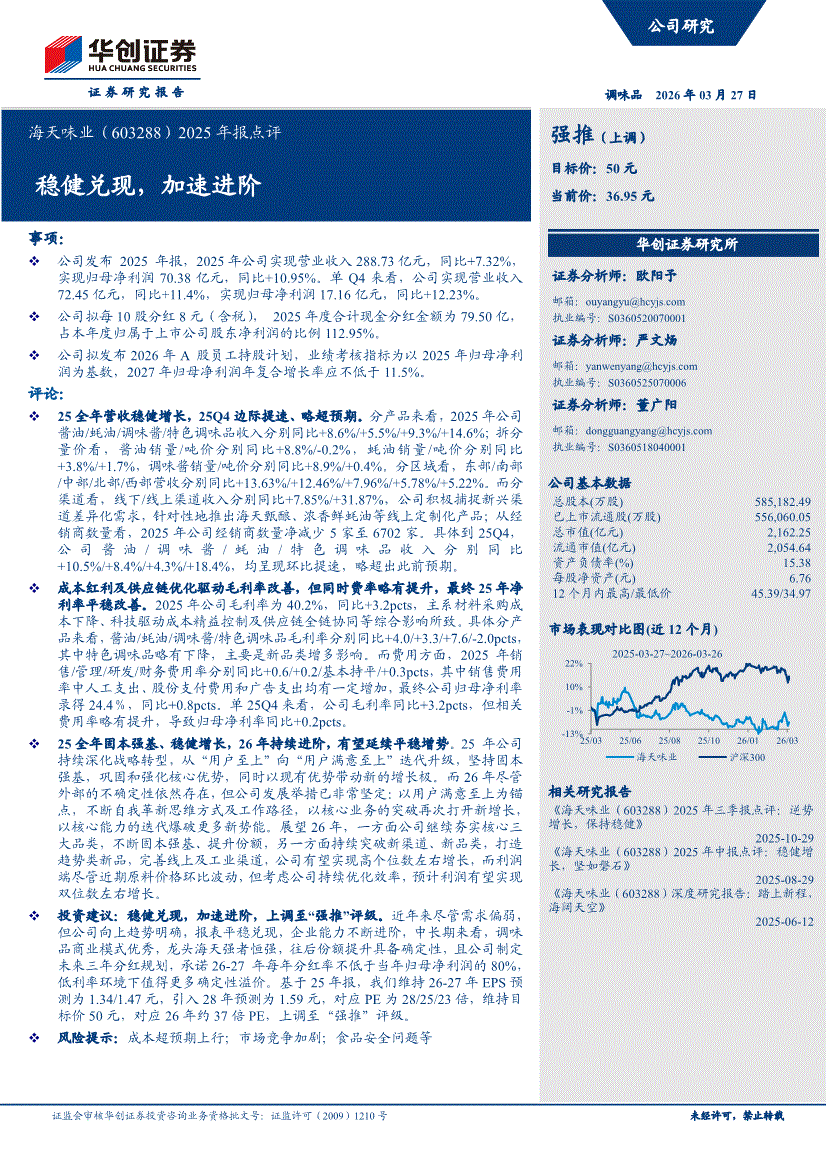 海天味业:华创证券-海天味业-603288-2025年报点评:稳健兑现,加速进阶-260327
