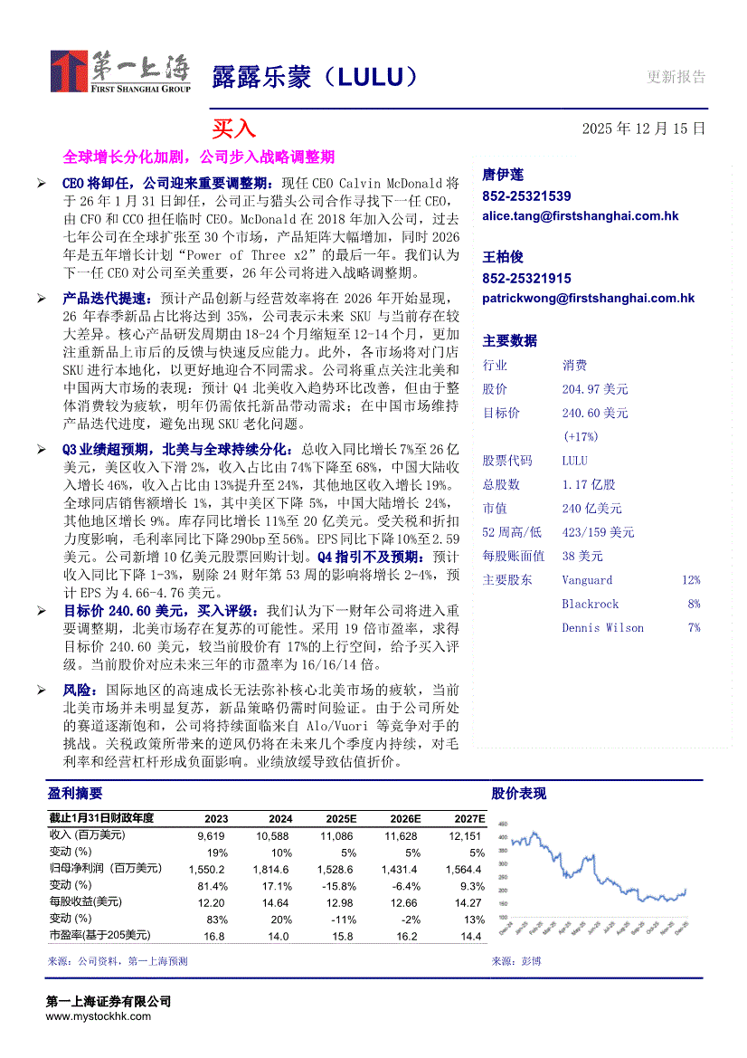 露露乐蒙:第一上海-露露乐蒙-LULU.US-全球增长分化加剧,公司步入战略调整期-251215
