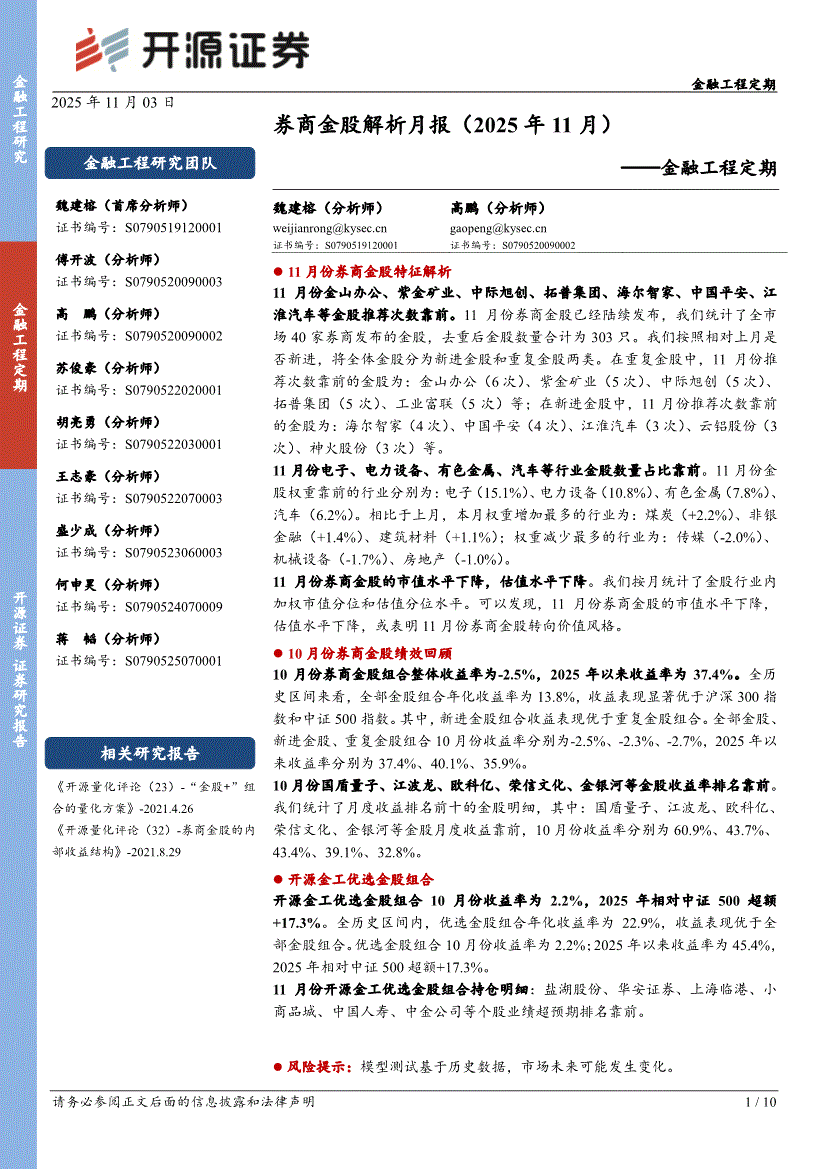 开源证券-金融工程定期:券商金股解析月报(2025年10月)-251009
