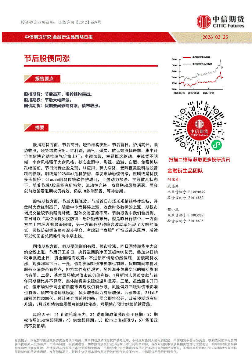 中信期货-金融衍生品策略日报:节后股债同涨-260225