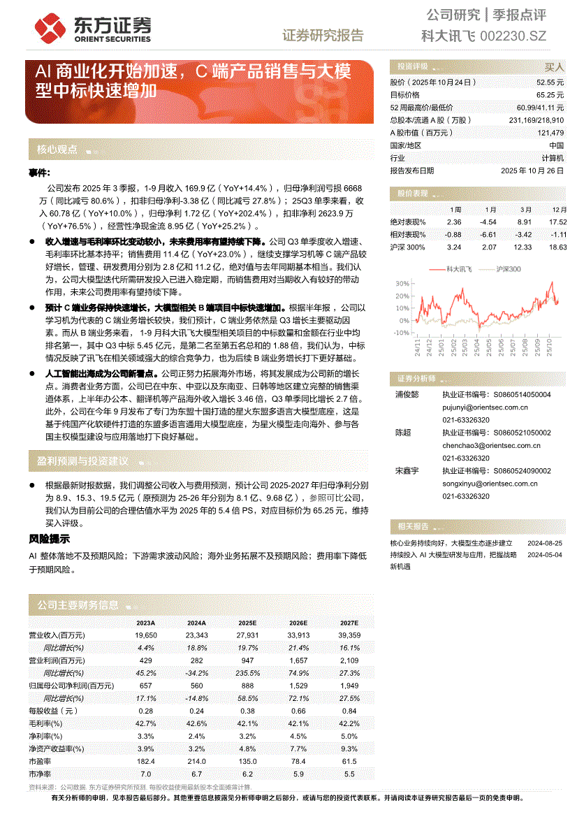 东方证券-科大讯飞-002230-AI商业化开始加速,C端产品销售与大模型中标快速增加-251026