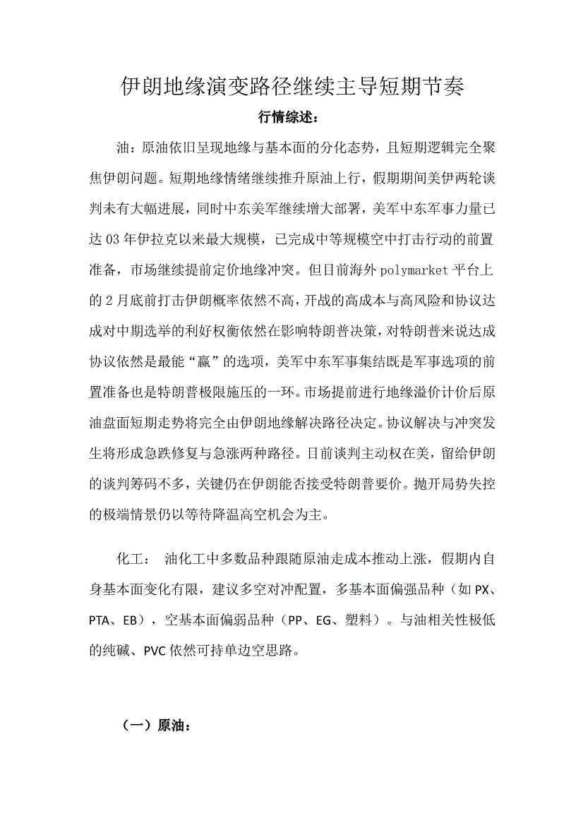 天富期货-伊朗地缘演变路径继续主导短期节奏-260226