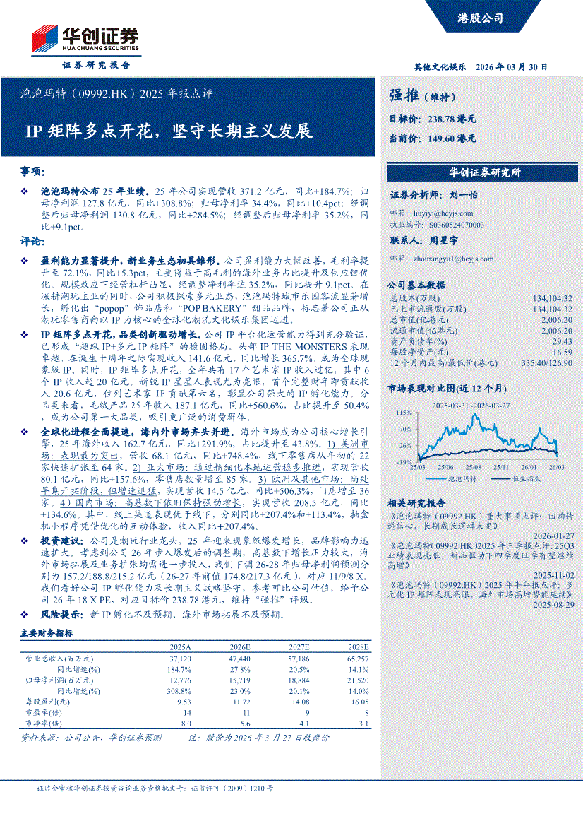泡泡玛特:华创证券-泡泡玛特-9992.HK-2025年报点评:IP矩阵多点开花,坚守长期主义发展-260330