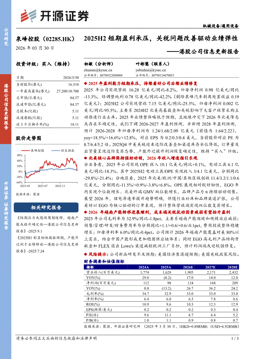 泉峰控股:开源证券-泉峰控股-2285.HK-港股公司信息更新报告:2025H2短期盈利承压,关税问题改善驱动业绩弹性-260330