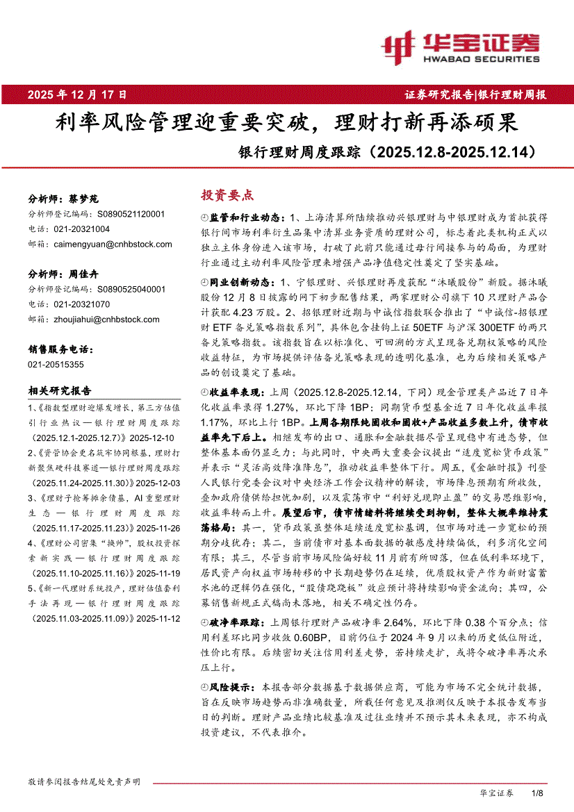 银行业:华宝证券-银行业理财周度跟踪:利率风险管理迎重要突破,理财打新再添硕果-251217