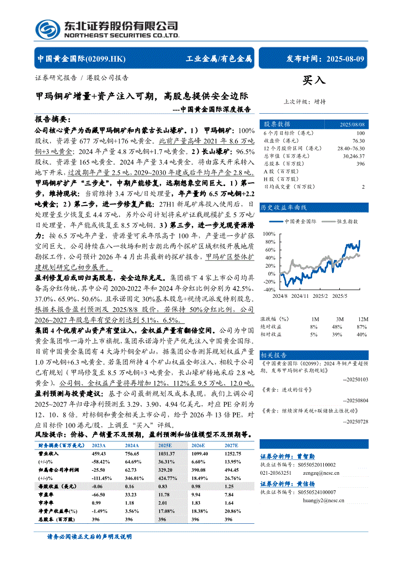 中国黄金国际:东北证券-中国黄金国际-2099.HK-深度报告:甲玛铜矿增量+资产注入可期,高股息提供安全边际-250809