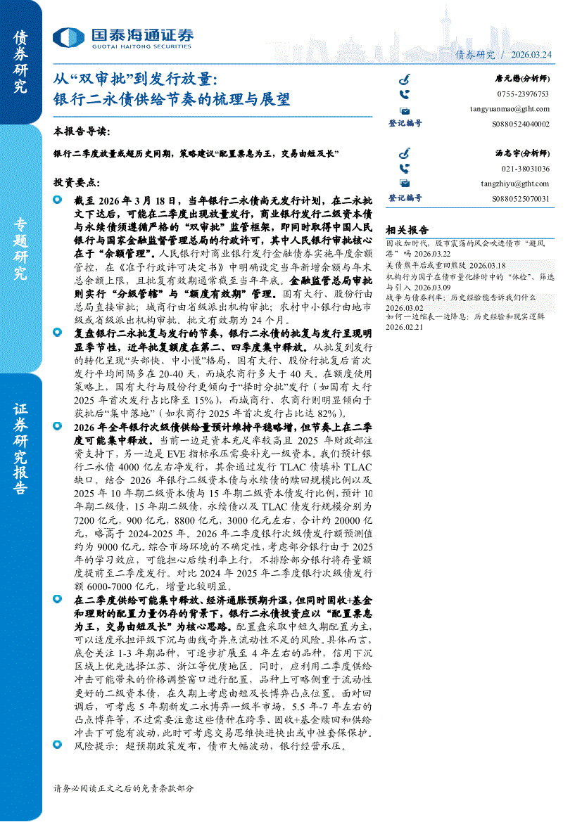 国泰海通证券-从“双审批”到发行放量:银行二永债供给节奏的梳理与展望-260324