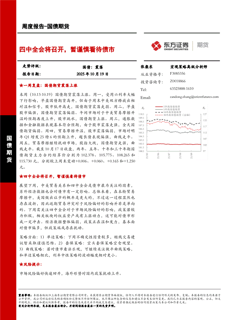 东证期货-国债期货周度报告:四中全会将召开,暂谨慎看待债市-251019