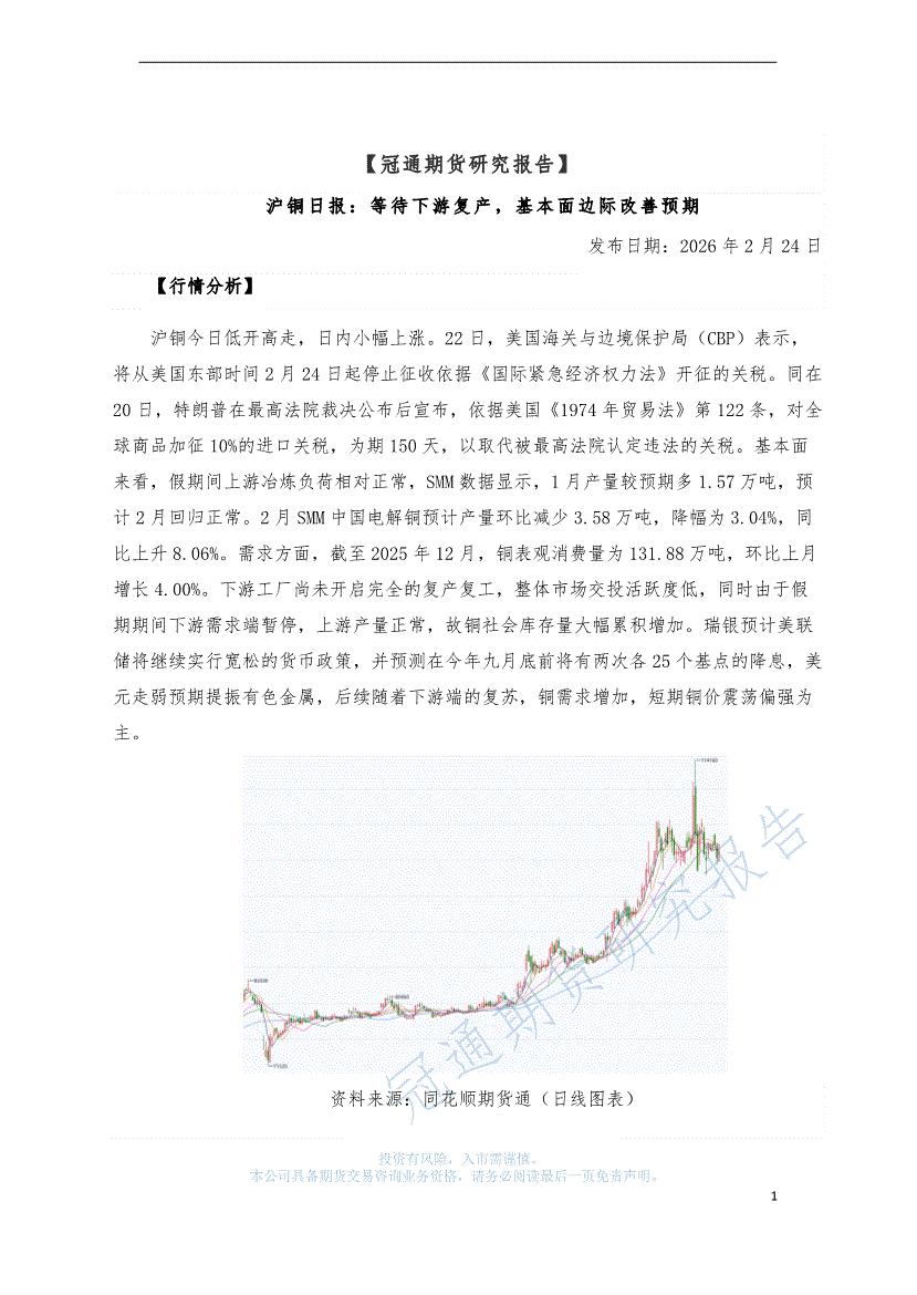 冠通期货-沪铜日报:等待下游复产,基本面边际改善预期-260224
