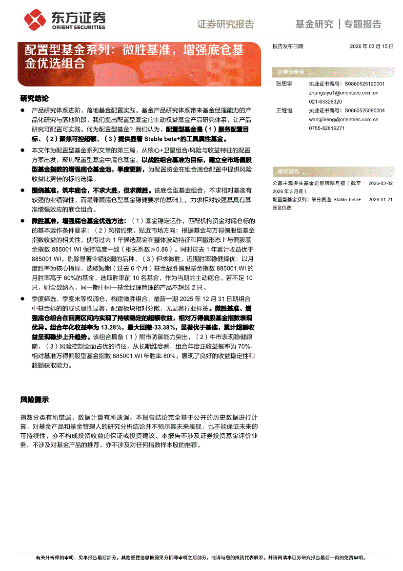 东方证券-配置型基金系列:微胜基准,增强底仓基金优选组合-260315