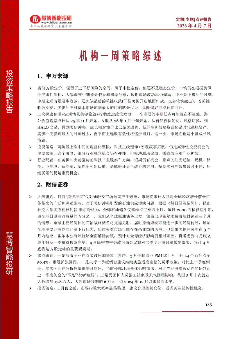 慧博智能投研-机构周策略:机构观点及行业配置-260406