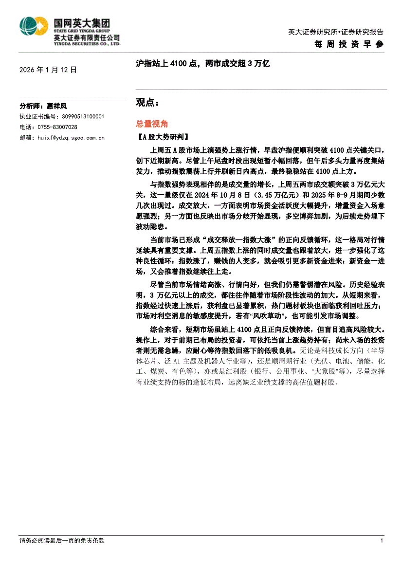 慧博智能投研-机构周策略:机构观点及行业配置-260111