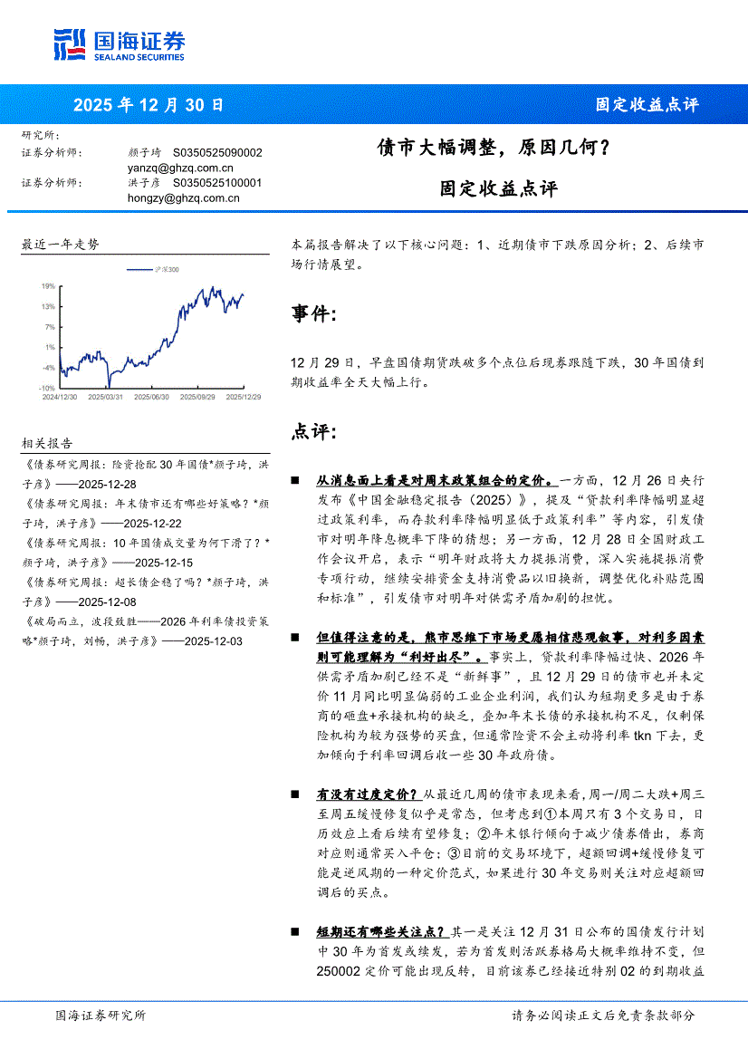 国海证券-固定收益点评:债市大幅调整,原因几何?-251230