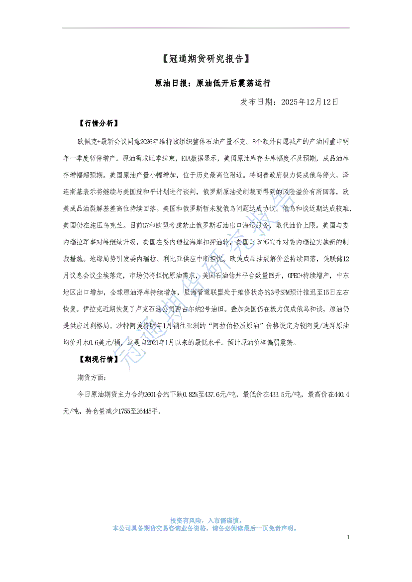 冠通期货-原油日报:原油低开后震荡运行-251212