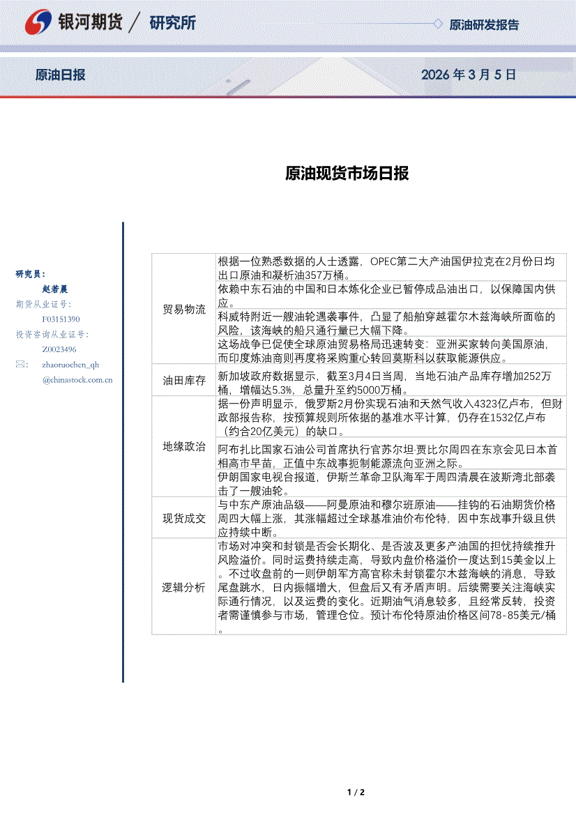 银河期货-原油现货市场日报-260305