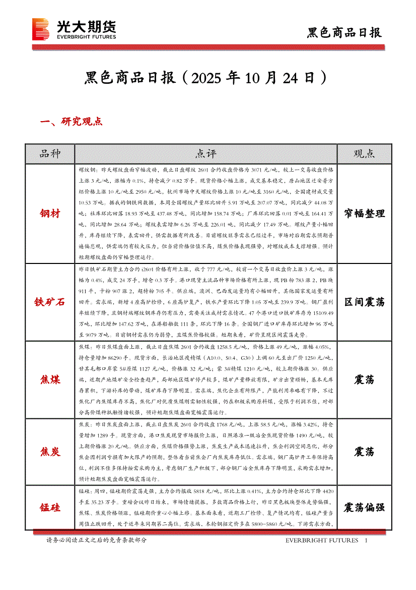 光大期货-黑色商品日报-251024