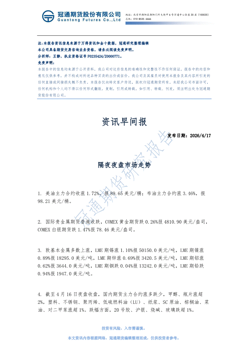 冠通期货-资讯早间报-260417