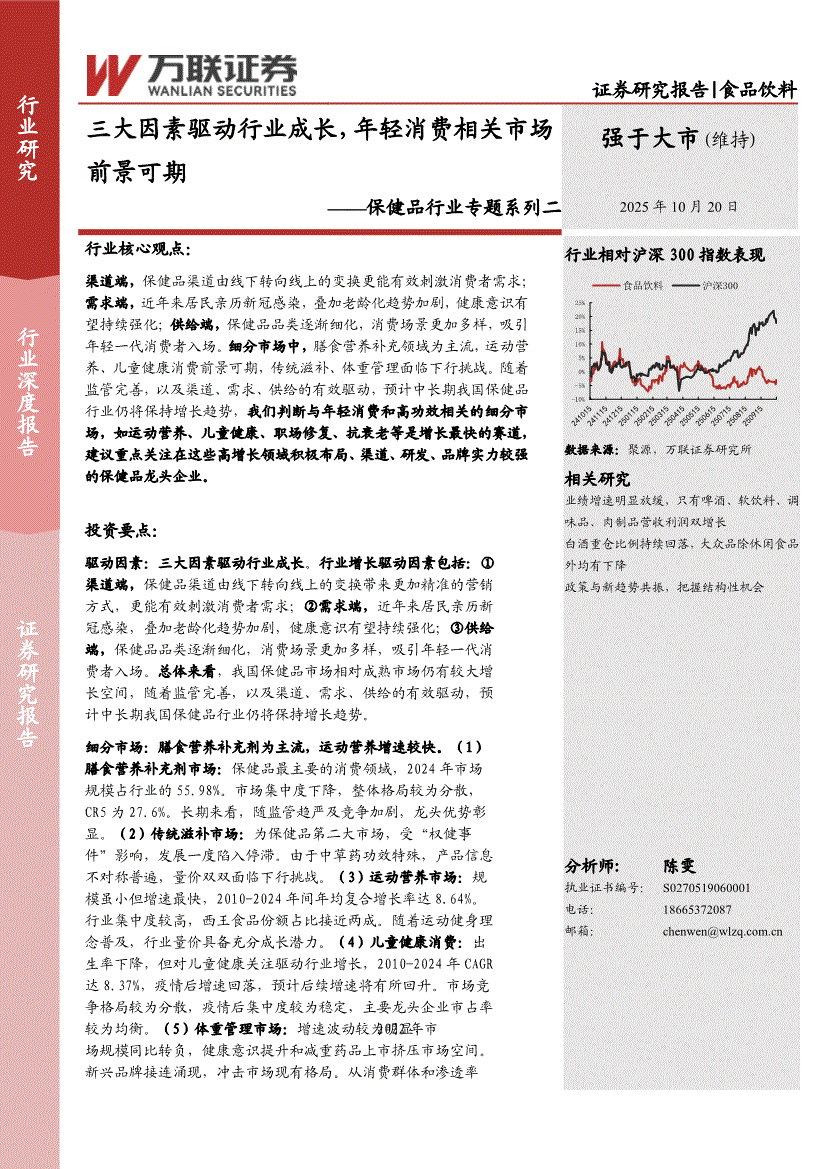 保健品行业:万联证券-保健品行业专题系列二:三大因素驱动行业成长,年轻消费相关市场前景可期-251020