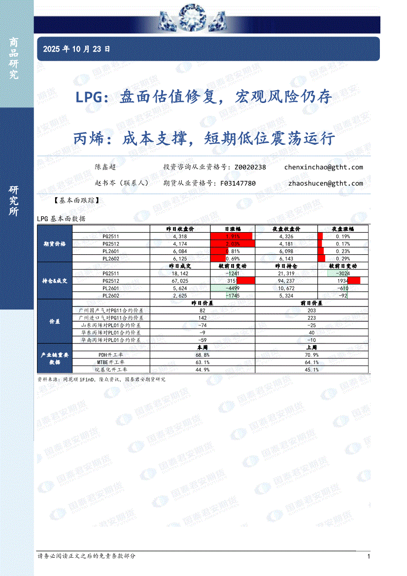 国泰君安期货-LPG:盘面估值修复,宏观风险仍存,丙烯,成本支撑,短期低位震荡运行-251023