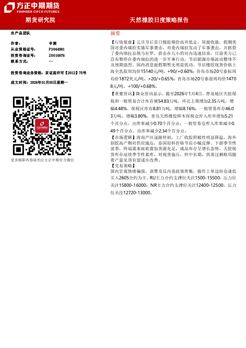 方正中期期货-天然橡胶日度策略报告-260105