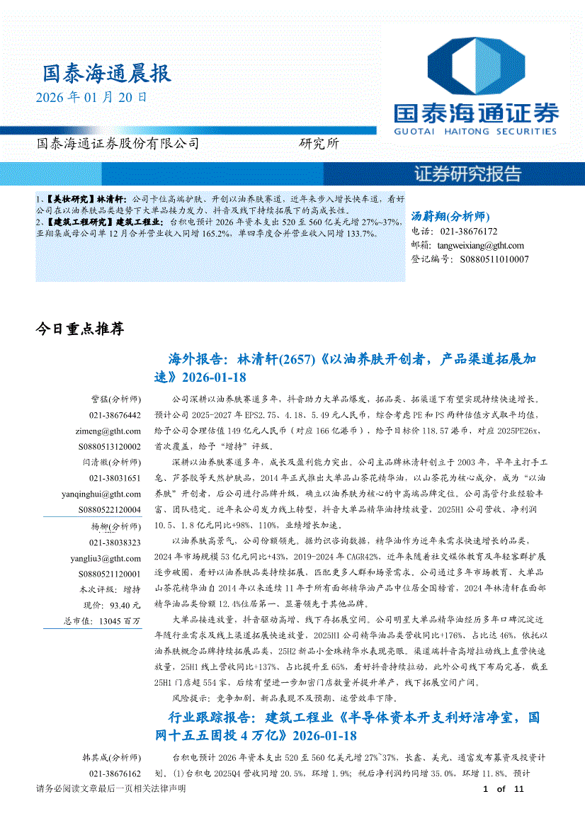 东北证券-建筑材料行业:关注洁净室板块,下游景气度超预期-260119