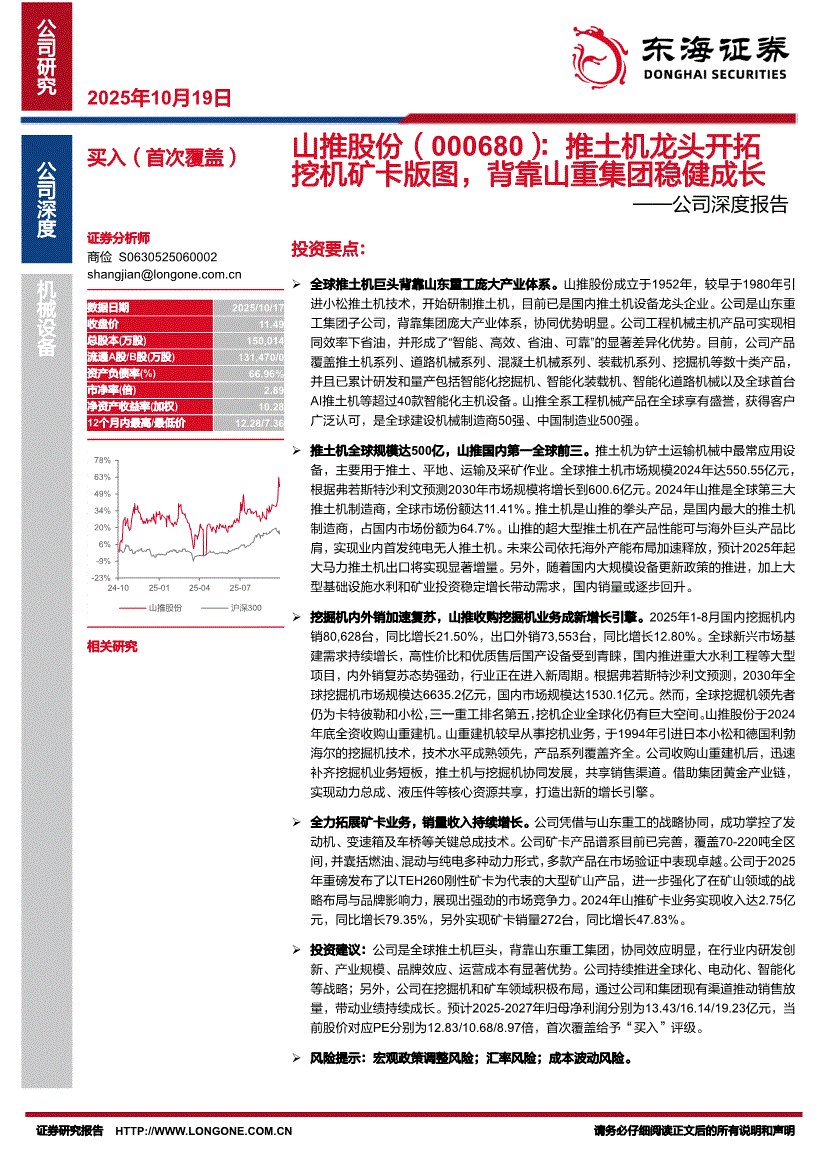 山推股份:东海证券-山推股份-000680-公司深度报告:推土机龙头开拓挖机矿卡版图,背靠山重集团稳健成长-251019