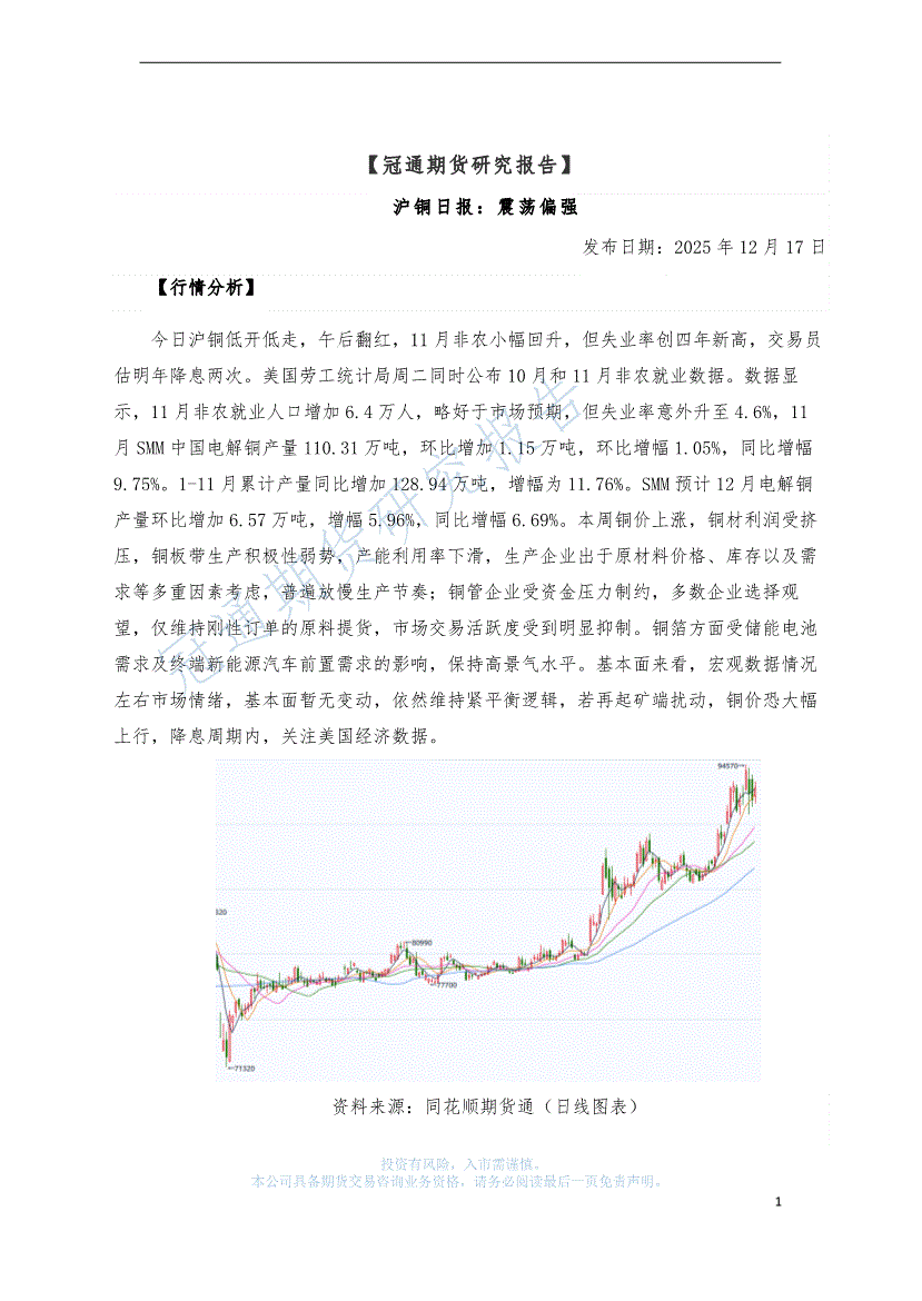 冠通期货-沪铜日报:情绪降温,价格回落-251216
