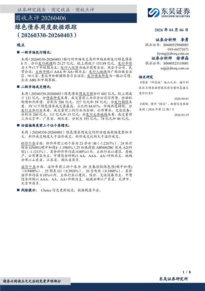 东吴证券-固收点评:绿色债券周度数据跟踪-260406