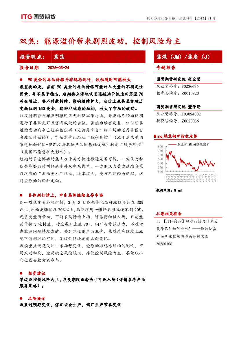 国贸期货-双焦:能源溢价带来剧烈波动,控制风险为主-260324