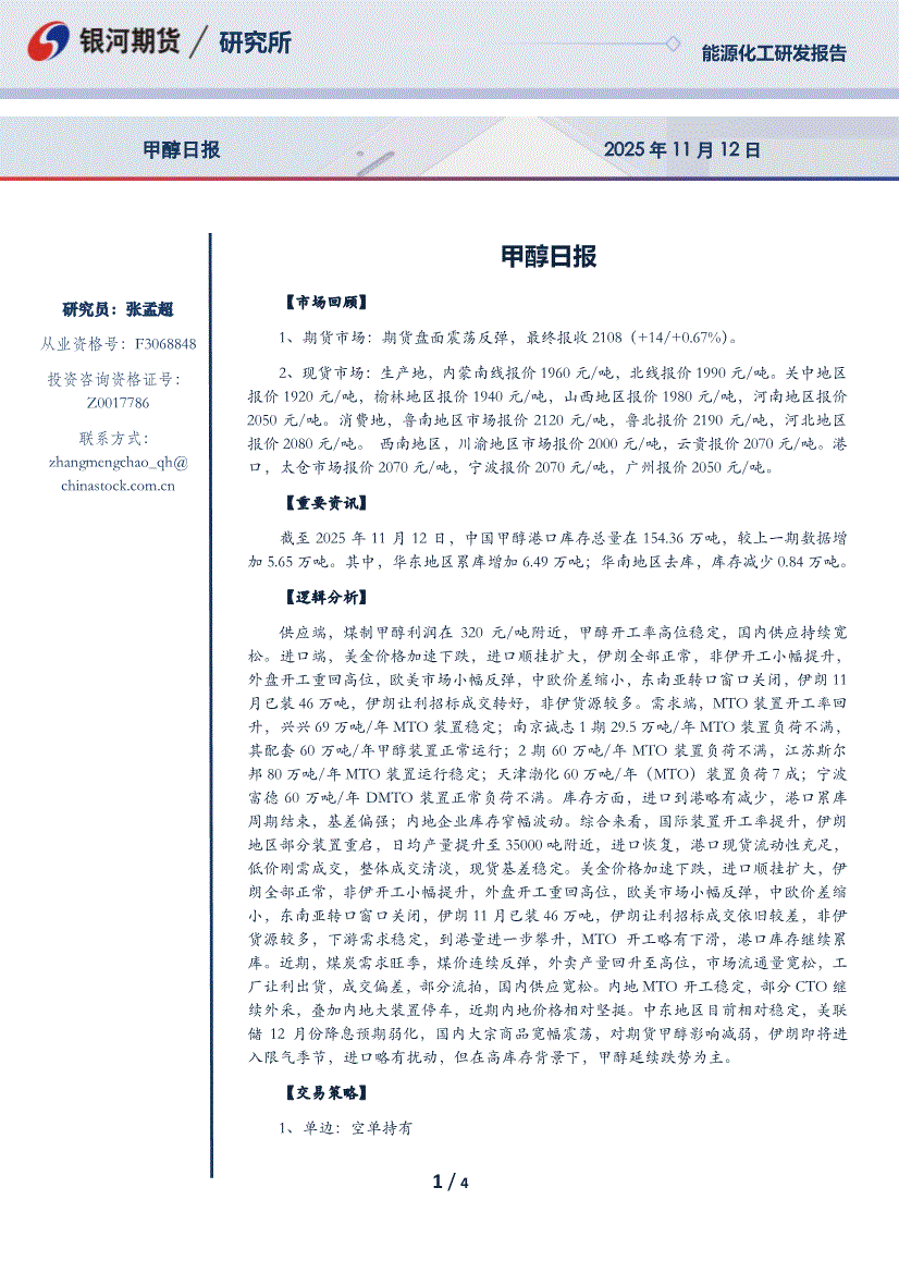 银河期货-甲醇日报-251112