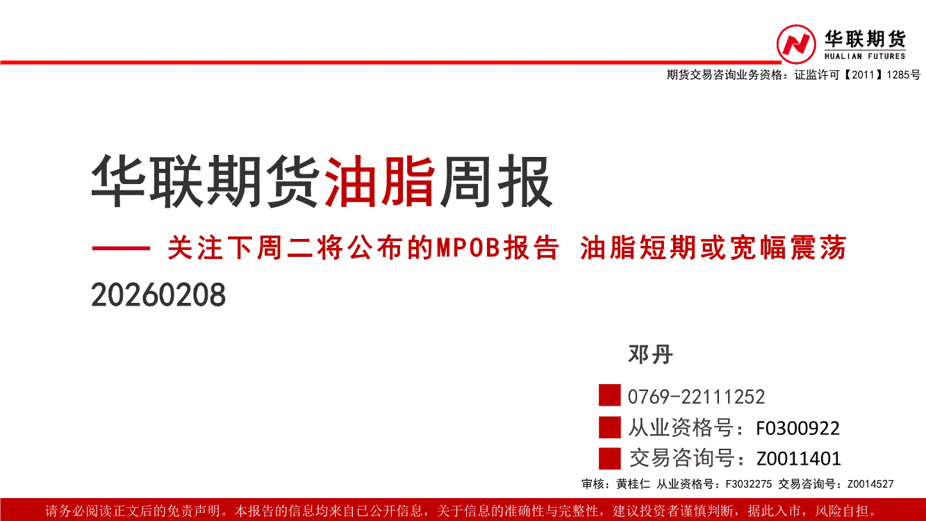 华联期货-油脂周报:关注下周二将公布的MPOB报告,油脂短期或宽幅震荡-260208