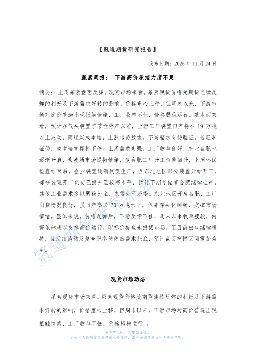 冠通期货-尿素周报:下游高价承接力度不足-251124
