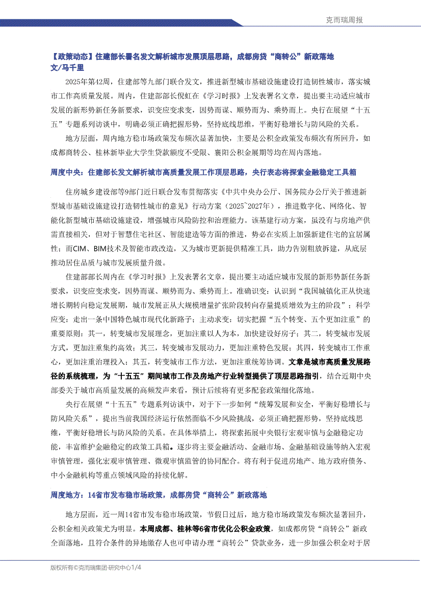 房地产行业:克而瑞研究中心-房地产行业:住建部长署名发文解析城市发展顶层思路,成都房贷“商转公”新政落地-251113