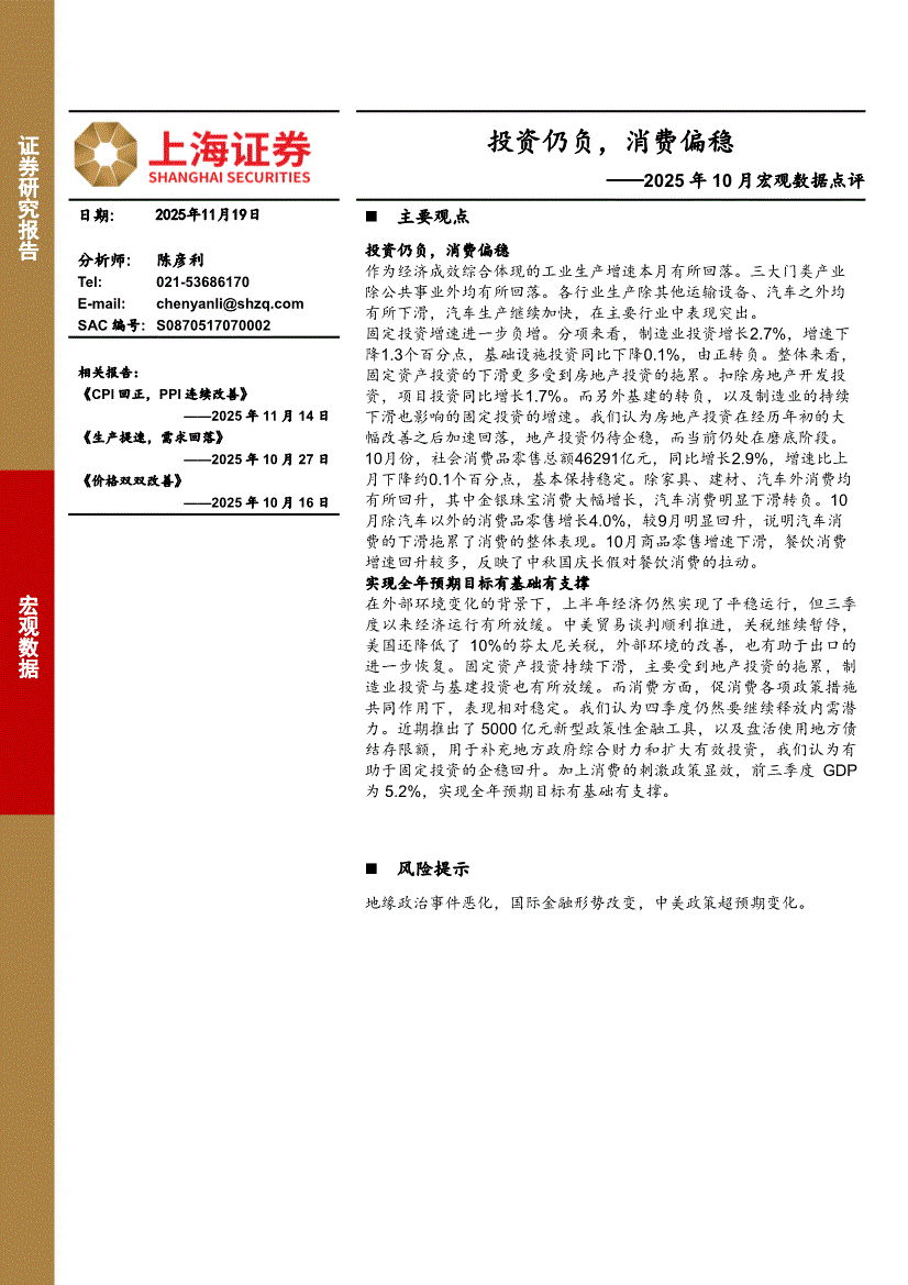上海证券-2025年10月宏观数据点评:投资仍负,消费偏稳-251119