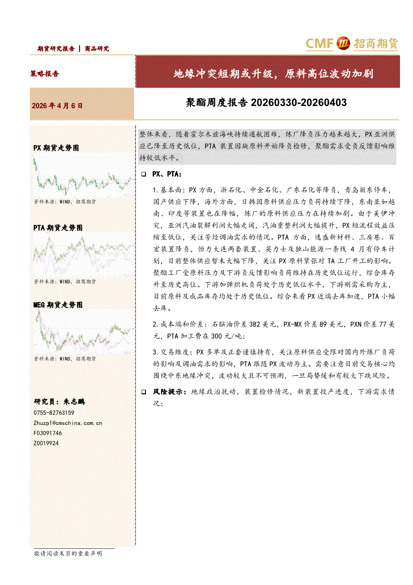 招商期货-聚酯周度报告:地缘冲突短期或升级,原料高位波动加剧-260406