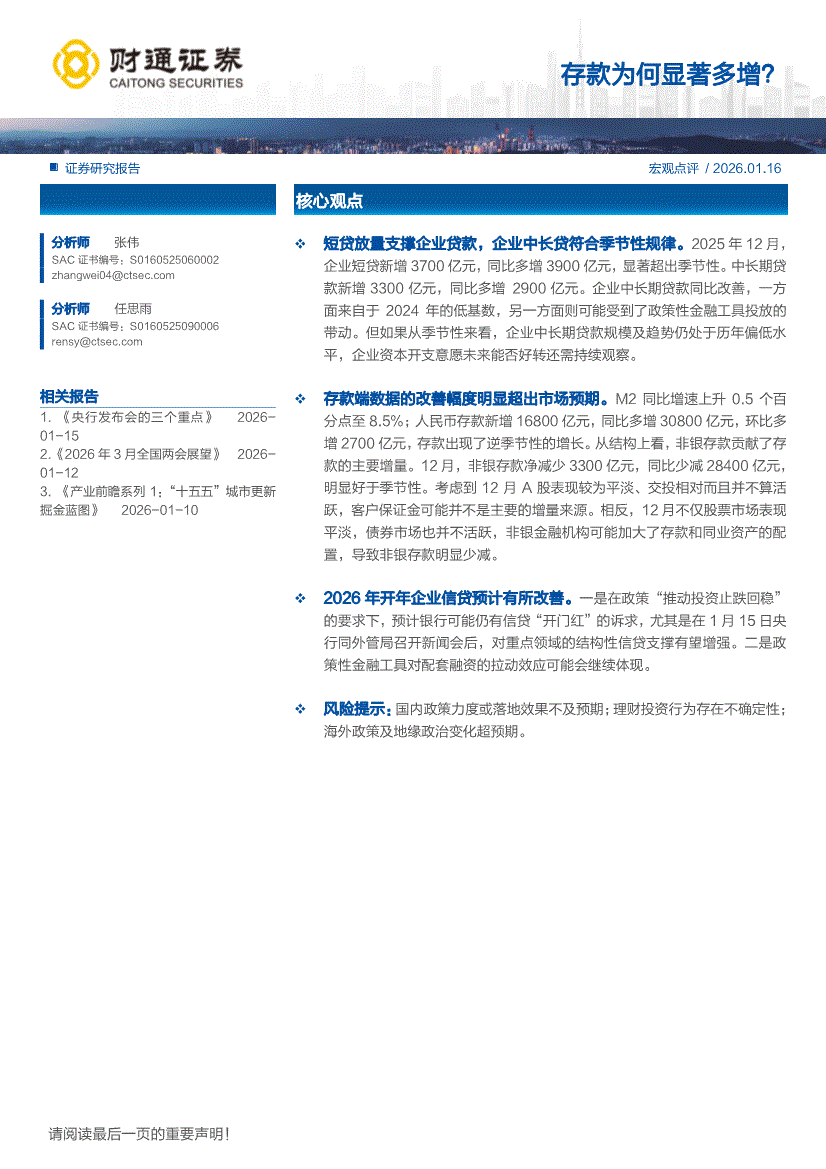 财通证券-宏观点评:存款为何显著多增?-260116