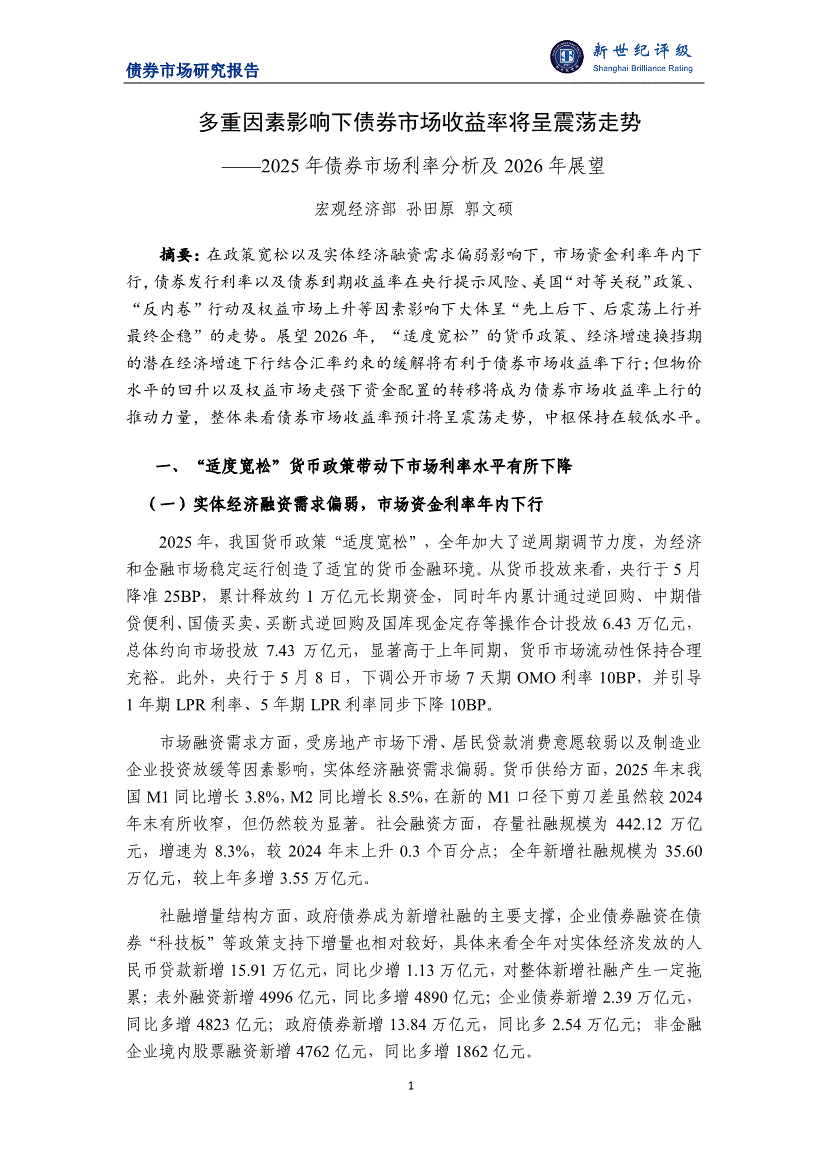 新世纪评级-2025年债券市场利率分析及2026年展望:多重因素影响下债券市场收益率将呈震荡走势-260227