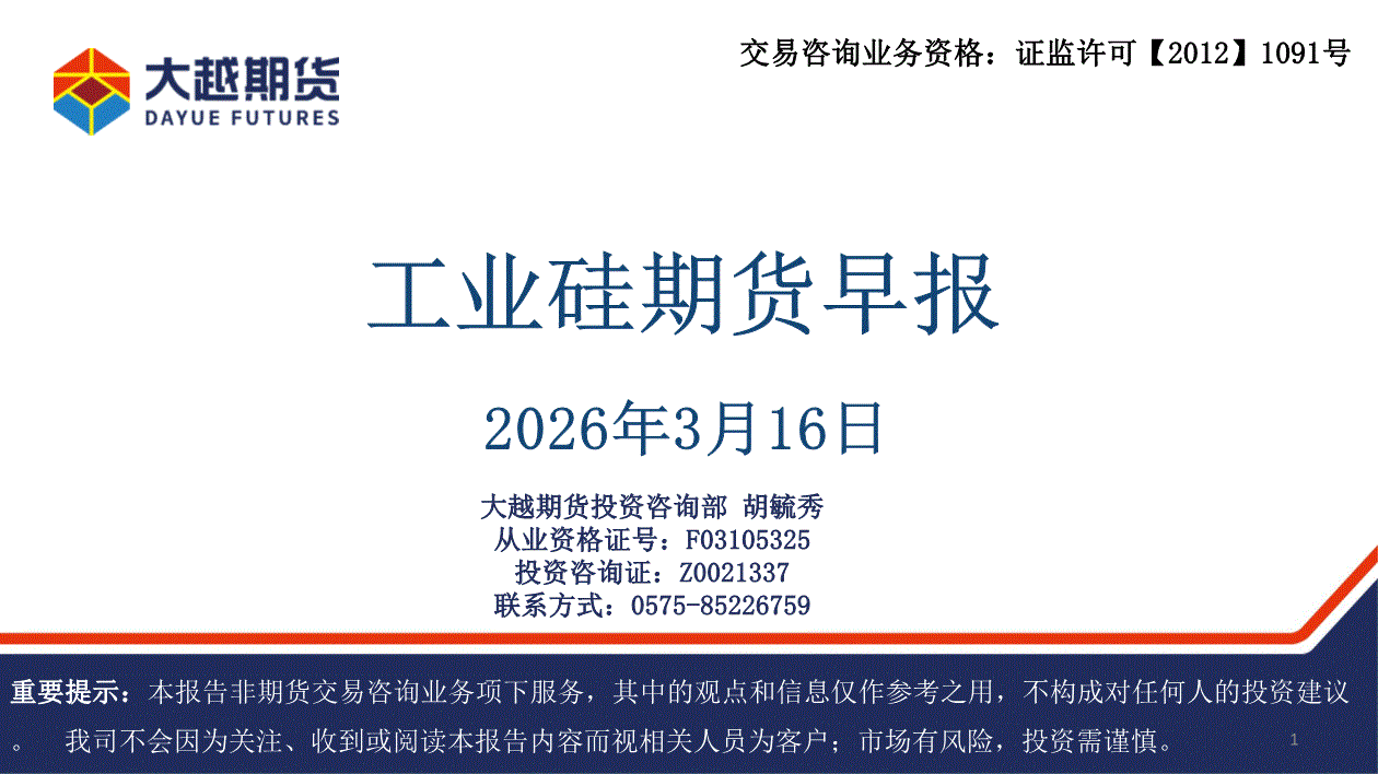 大越期货-工业硅期货早报-260316