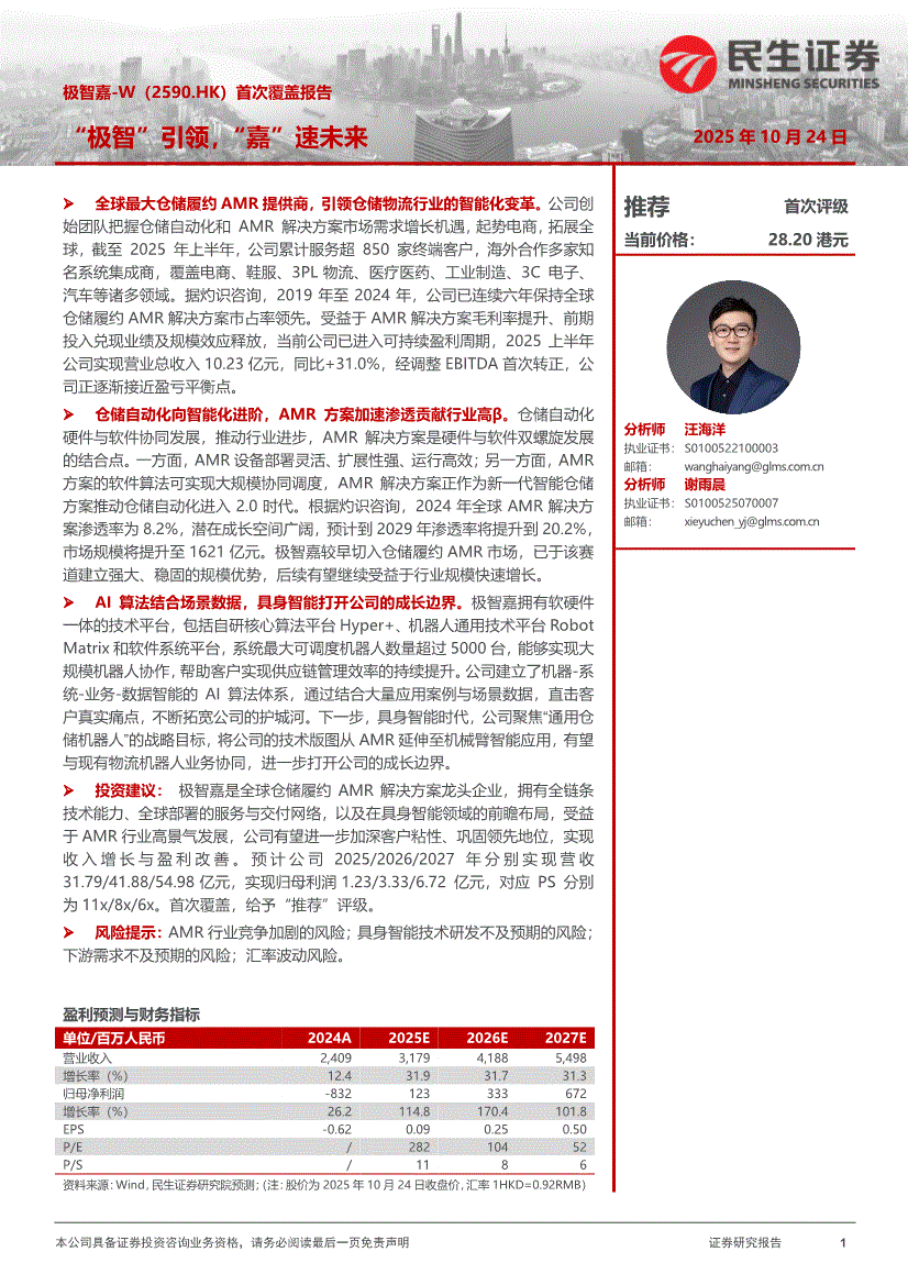 极智嘉~W:民生证券-极智嘉~W-2590.HK-首次覆盖报告:“极智“引领,“嘉”速未来-251024