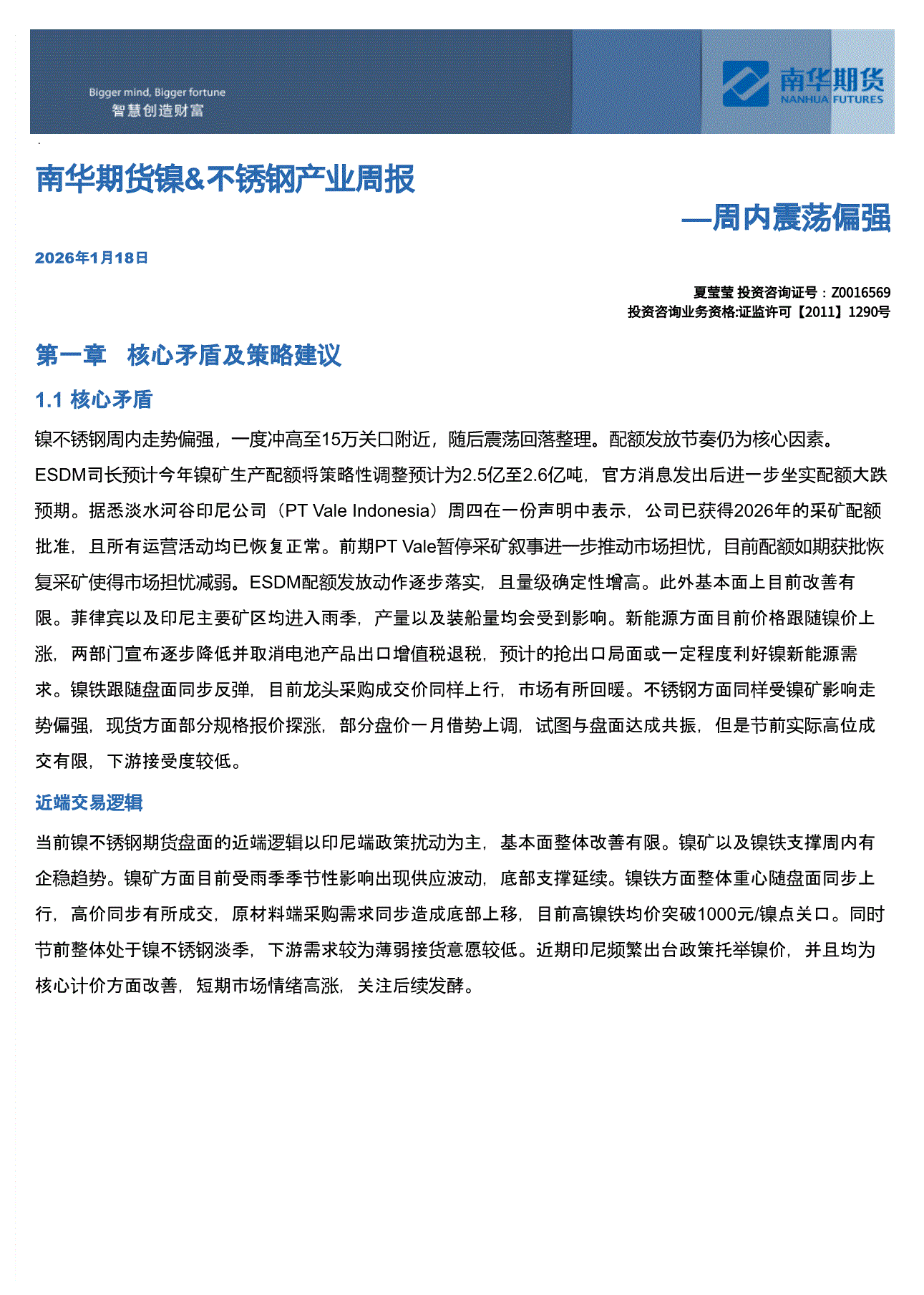 南华期货-镍&不锈钢产业周报:周内震荡偏强-260118