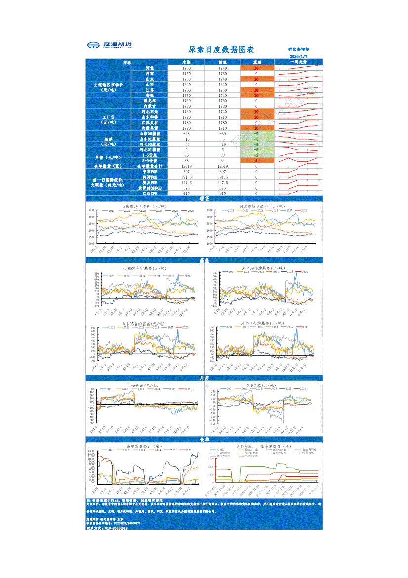 冠通期货-尿素日度数据图表-260107