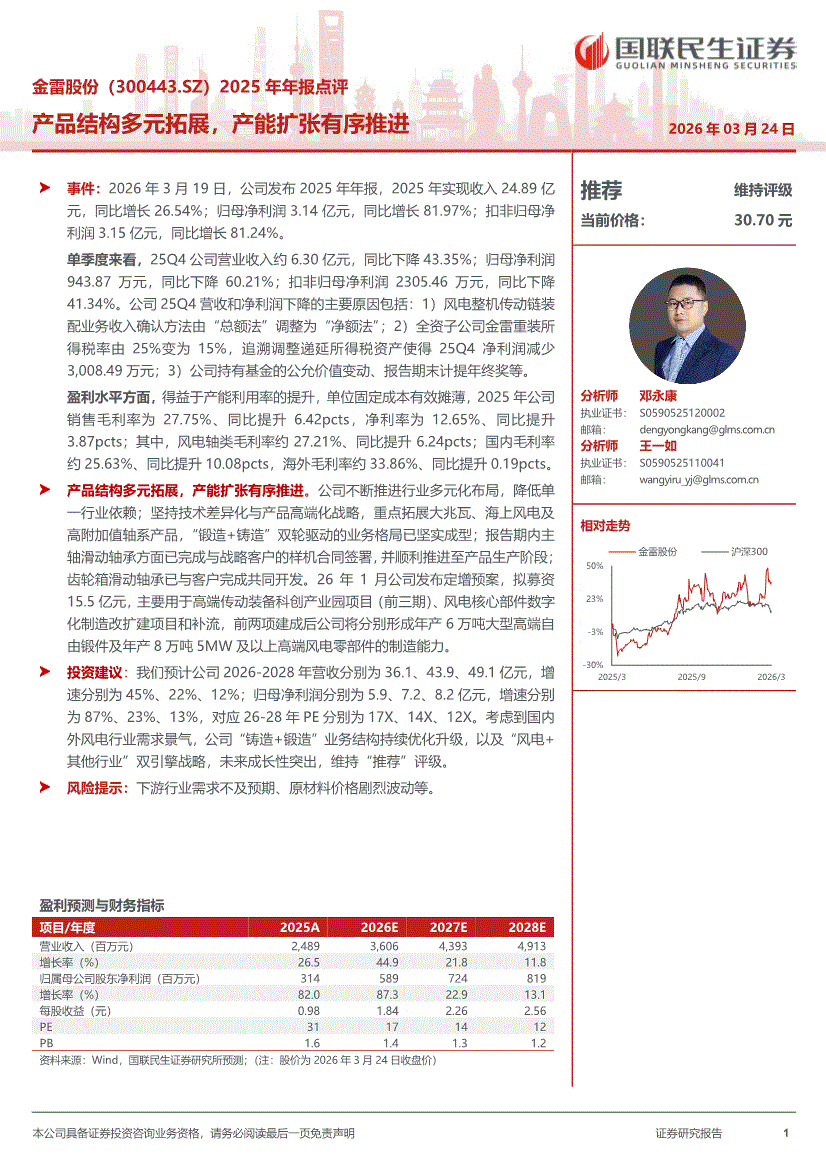 金雷股份:国联民生证券-金雷股份-300443-2025年年报点评:产品结构多元拓展,产能扩张有序推进-260324