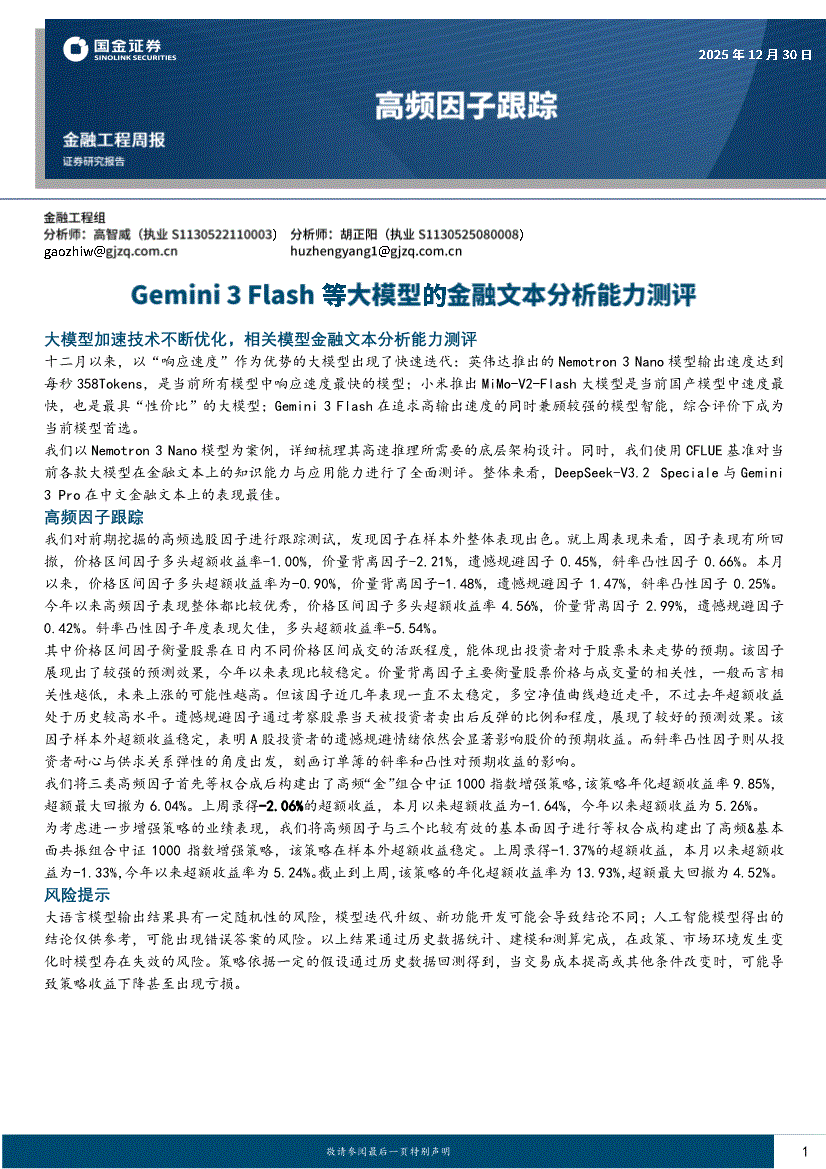 国金证券-高频因子跟踪:Gemini 3 Flash等大模型的金融文本分析能力测评-251230