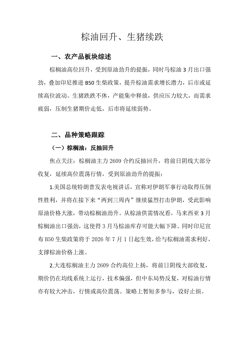 天富期货-豆粕冲高回落,棕油劲升-260312