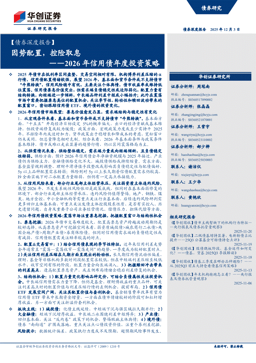 华创证券-【债券深度报告】2026年信用债年度投资策略:因势配置,控险取息-251203